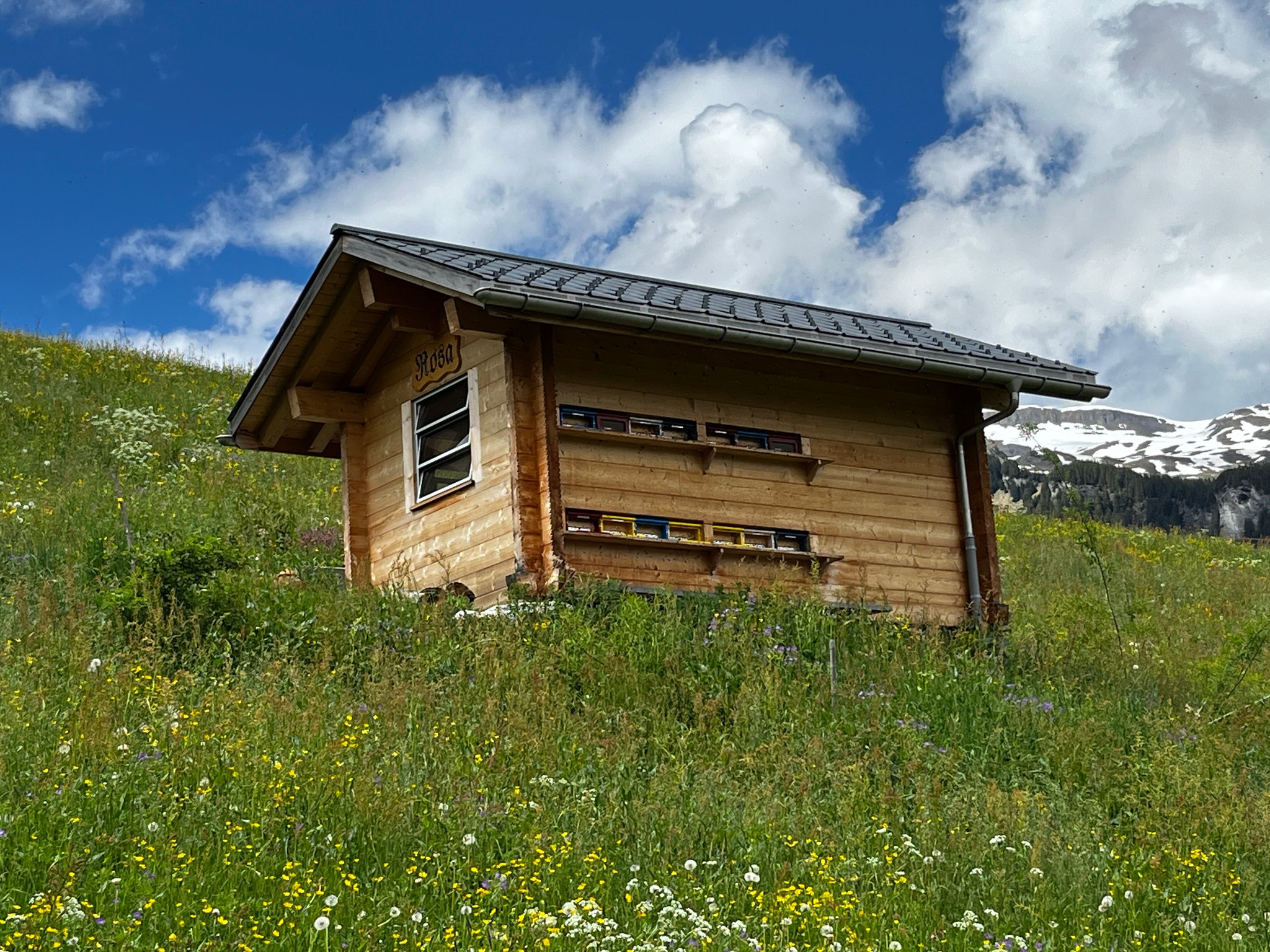 In unserer Freizeit kümmern wir uns leidenschaftlich um unsere rund zehn Bienenvölker und bieten das Süsse Gold der Natur auch gerne zum Kauf an (solange Vorrat).